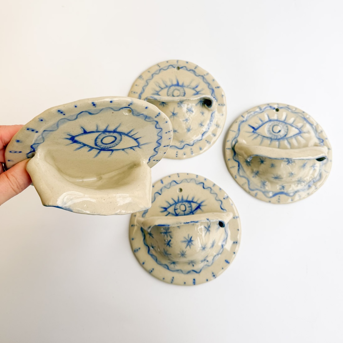 The product images are examples of the design, but are not the specific items you will receive. With these handmade products, each one is unique. Expect variation, including beauty marks, or even slight imperfections.