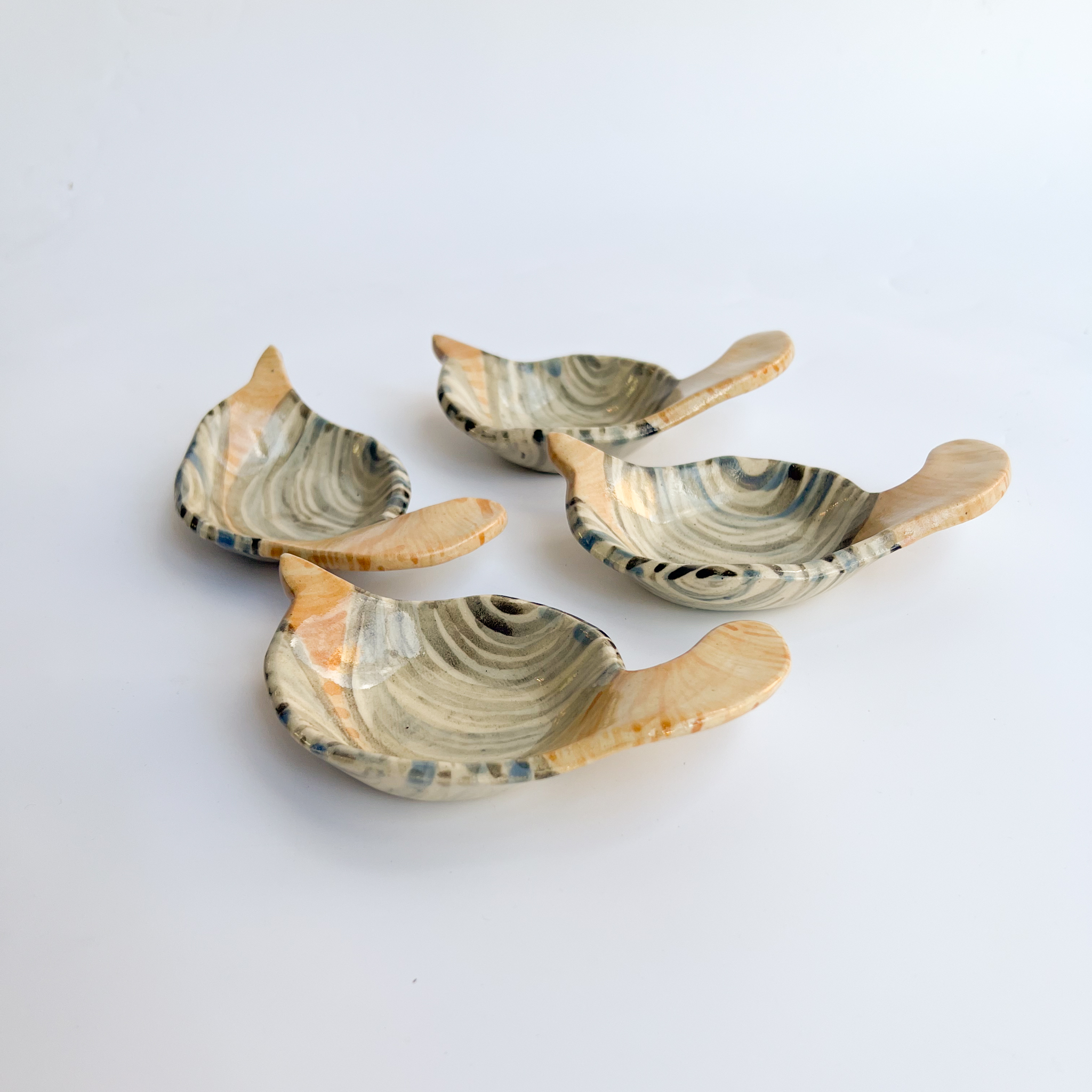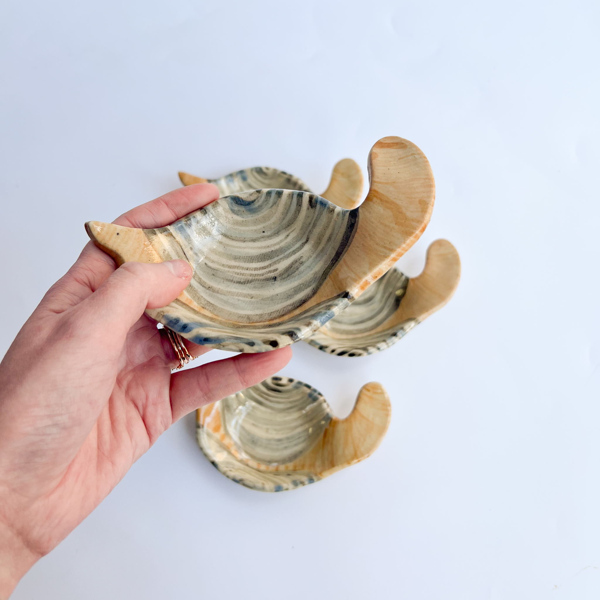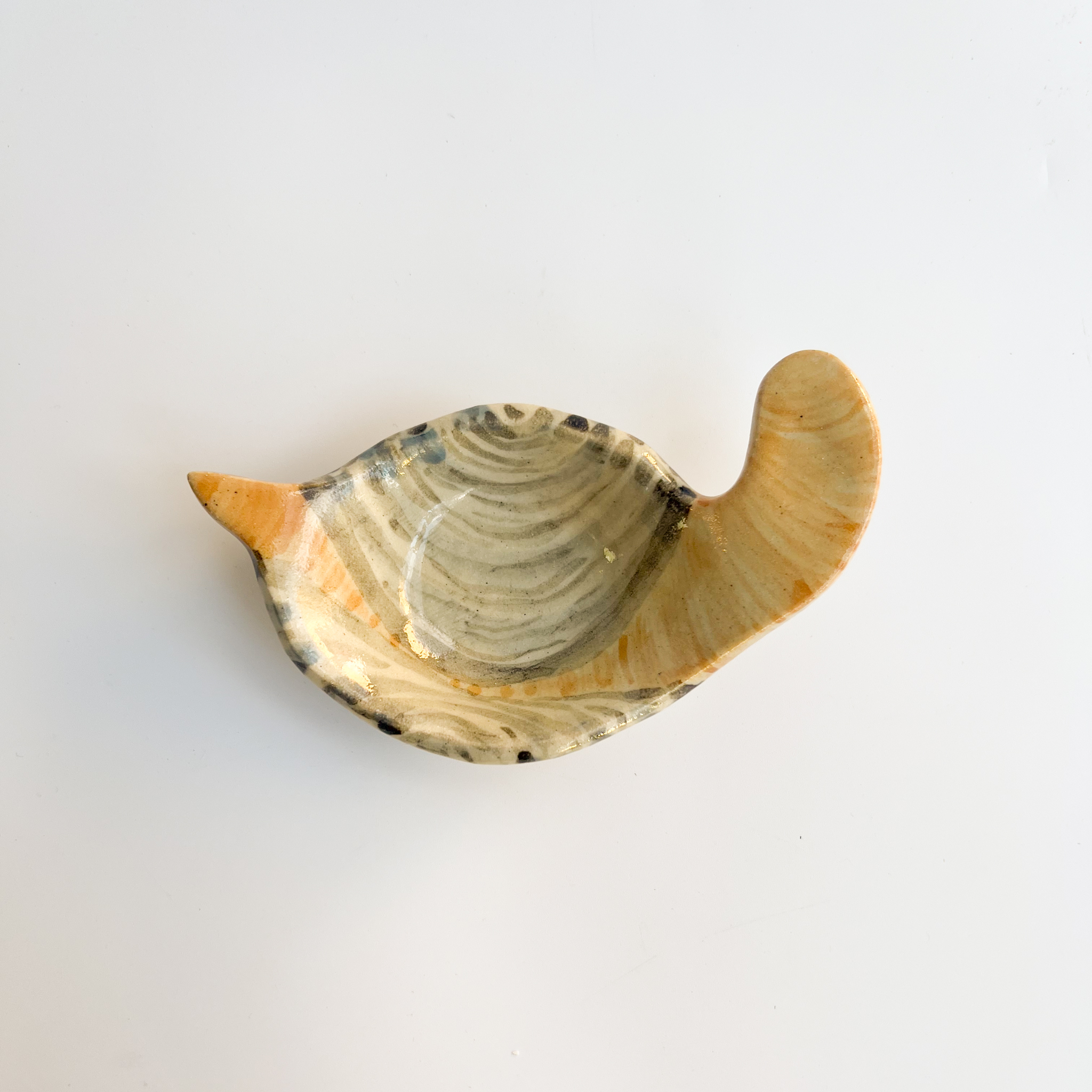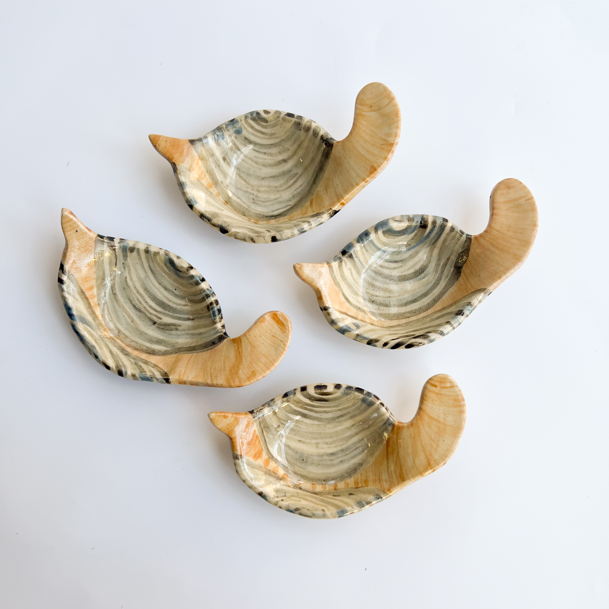 This quirky geoduck dish is hand formed and hand painted. Like the effervescent clam itself, each dish is unique and one of a kind.