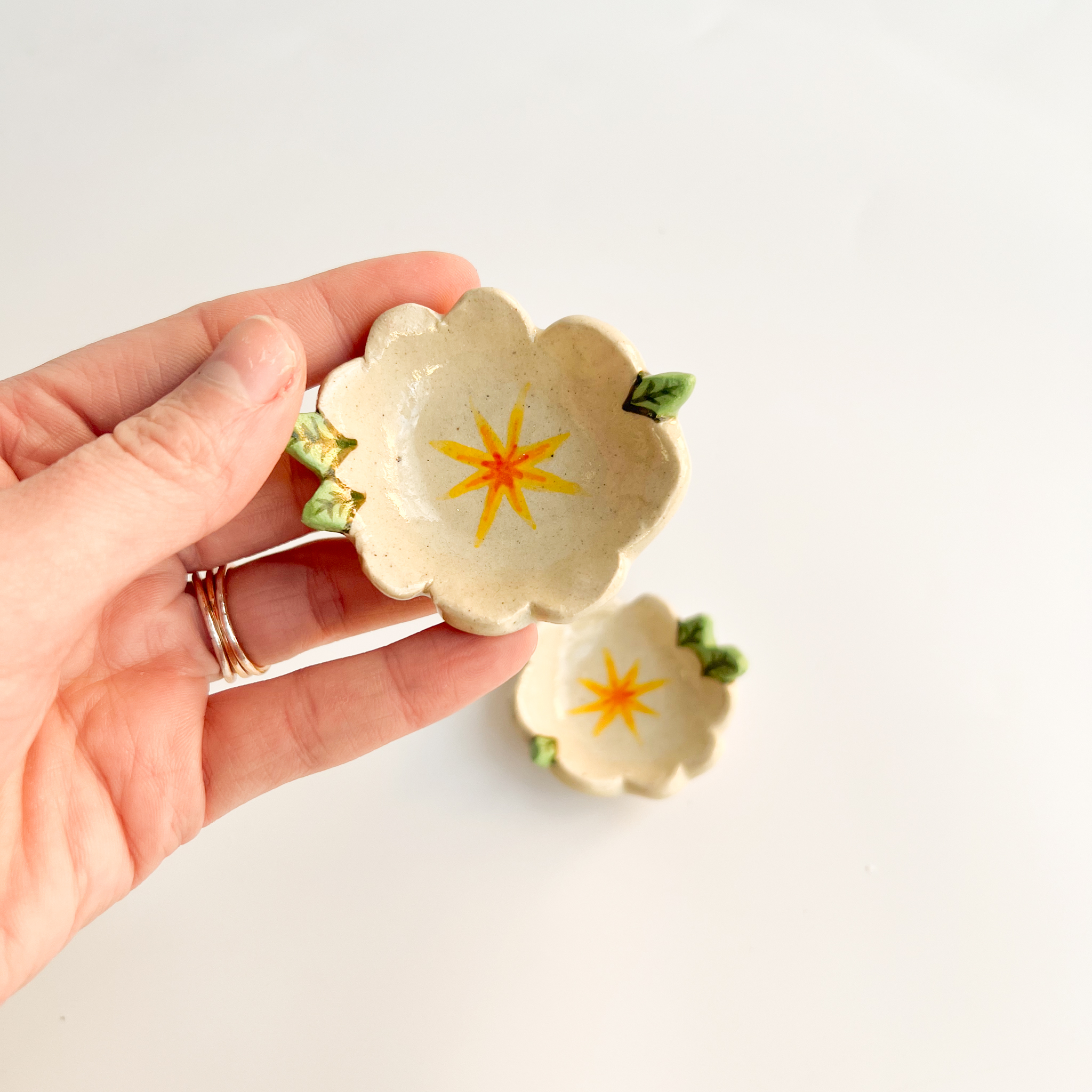 The product images are examples of the design, but are not the specific items you will receive. With these handmade products, each one is unique. Expect variation, including beauty marks, or even slight imperfections.